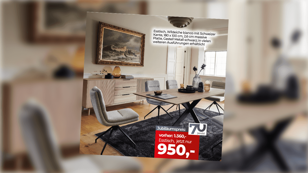 Ein ganzes Haus (4.500 m²) voller Wohnideen zu Jubiläumspreisen. Denn durch die Unterstützung unserer Lieferanten gibt es im Jubiläumsverkauf für Sie alles günstiger.